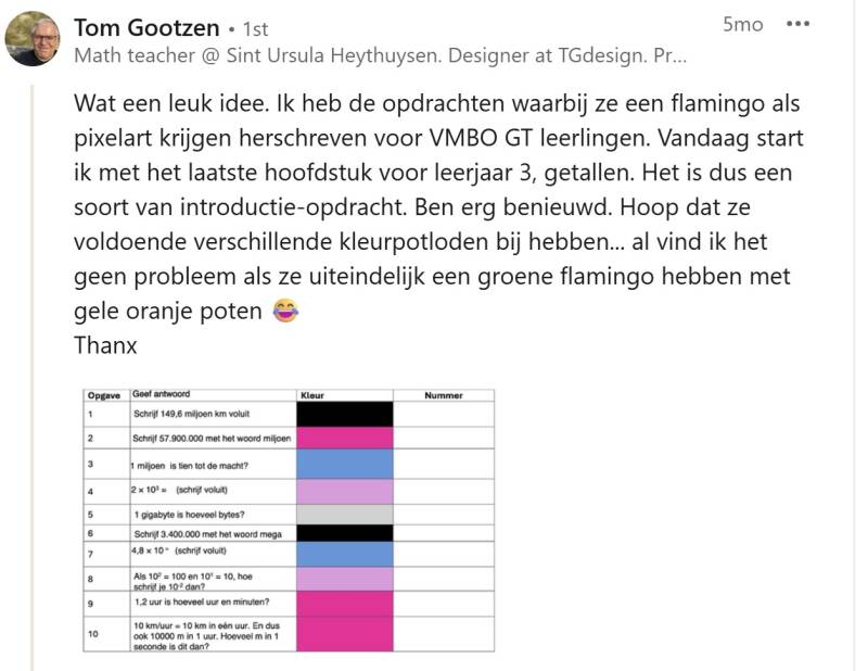 Naar aanleiding van een post van mij op LinkedIn over deze werkvorm kreeg ik een reactie van iemand die de opdracht had aangepast naar zijn eigen lespraktijk. Hier word ik dus ontzettend blij van!