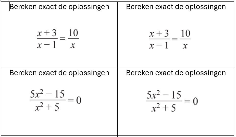 Een korte opdracht (sluit aan bij wiskunde B, paragraaf 4.3, theorie A) om een les mee te starten en leerlingen te laten ervaren dat je eerst goed moet kijken naar een vergelijking voordat je begint met het oplossen ervan.